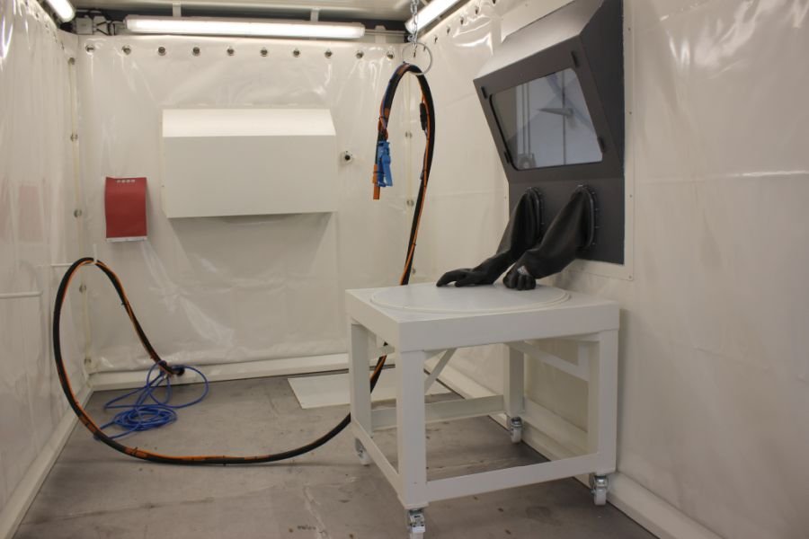 Tryskací technika tedy zahrnuje tryskací zařízení, která jsou označována nejen jako tryskací kabiny, tryskací boxy, tryskací komory, tryskací kontejnery ale i jako pískovací kabiny, pískovací boxy, pískovací zařízení, pískovačky, pískovací komory a další.